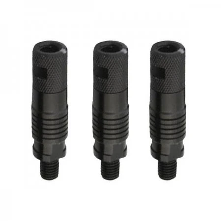 Veľmi praktický doplnok od švédskej firmy Prologic – vylepšený špeciálny rýchlo upínací konektor. U nás sa používa najmä na upevnenie signalizátorov záberu do stojana na prúty. Je veľmi pevný a vďaka systému pružných guličiek veľmi dobre drží v základnej časti. Obidve jeho časti majú špeciálne anglické stúpanie závitu, používané nielen na všetkých rybárskych signalizátoroch a stojanoch, ale aj na úlovkových sieťkach a pod. Tam všade nájde tento konektor svoje využitie. Dodáva sa v troch veľkostiach, pričom veľkosti závitov sú u všetkých rovnaké. Rozlišujú sa iba robustnosťou vonkajšieho puzdra a zasúvacieho systému. Dodávané v čiernej eloxovanej farebnej úprave.