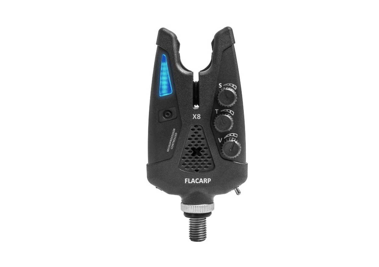 používania. A nová modelová sada Flacarp X8 to len dokazuje nakoľko získala opäť praktické funkcie navyše oproti sade X7. Ide o moderné hlásiče záberov s inovatívnym snímačom pohybu vlasca už od 1,5 mm v oboch smeroch! Samozrejmosťou sú aj farebné