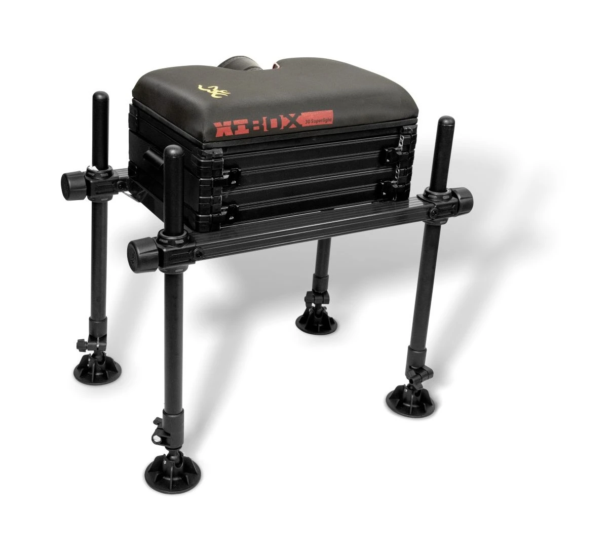 Stabilitu a extra nosnosť zaručujú štyri silné nastaviteľné nohy, ktoré majú priemer 30mm, ktoré sú zakončené extra širokými pätkami proti zaboreniu. Na tieto nohy je možné nasadiť množstvo dodatočných doplnkov. Na prepravu k brehu slúži silno polstrovaný popruh cez rameno.