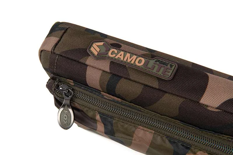 • Fox Camo vodotesný prehoz, ktorý je možné schovať vo vrecku sedáku na zips