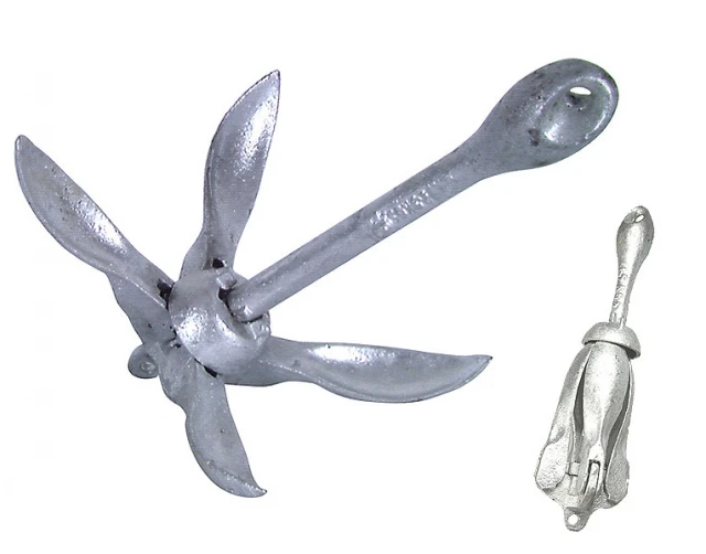 Skladacia rybárska kotva s poistkou. Praktická a nepostrádateľná pomôcka ku každému typu člnu pre každého rybára. Využitie:rybolov, vodná turistika, pracovné pomôcky