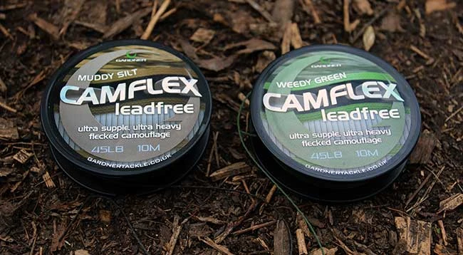 Camflex Leadfree je tkaný z hustých 100% ťažkých PTFE vlákien, čo znamená, že šnúra je makká a pružná a má vynikajúce vlastnosti pri potápaní a odere. 45lb Leadfree Leaders je k dispozícii v Weedy Green a Muddy Silt.