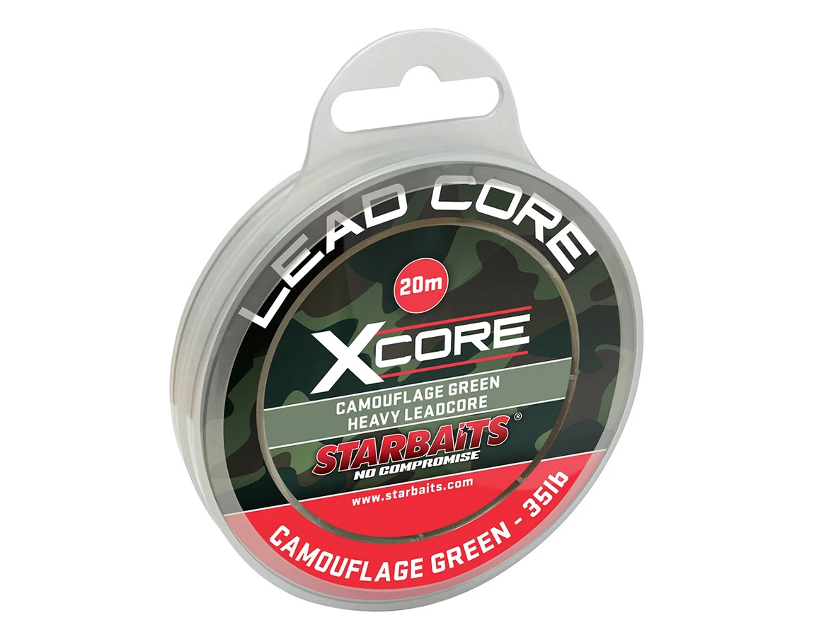Pletená šnúra Starbaits X Core Cam Green s oloveným jadrom je určená na zhotovenie pevných koncových montáží, ktoré majú dokonale splynúť s dnom. Jej vysokú pevnosť a odolnosť voči oderom zabezpečuje veľmi kvalitné opletanie syntetickými vláknami, ktoré však umožňujú jednoduché vniknutie ihly v prípade potreby vytvorenia slučky. Olovené jadro šnúry X Core Cam Green jej dodáva vyššiu hmotnosť a je mäkké, takže dokáže automaticky kopírovať dno ihneď po nahodení. V kombinácii s kamuflážovým dizajnom tak ide o ideálnu voľbu pre všetkých, ktorí chcú chytať na zarastenom dne plnom prekážok. Šnúra Starbaits X Core Cam Green ponúka nosnosť 35 lbs alebo 45 lbs a je teda určená na lov kapitálnych kaprov. Balenie obsahuje 20 m šnúry.