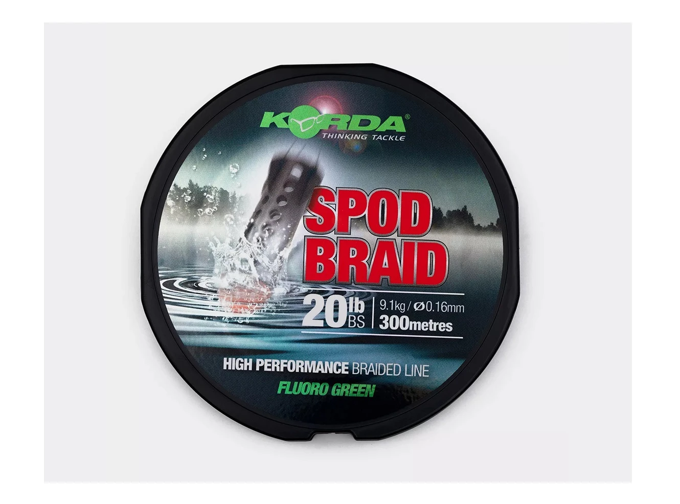 Aj vy hľadáte ideálnu šnúru na kŕmenie spodovou raketou? Možno ste ju práve našli. Korda Spod Braid totiž ponúka ideálny priemer na dlhé hody (0,16 mm) a extrémnu odolnosť s nosnosťou 9,1 kg / 20 lbs. Okrem toho má šnúra výraznú neónovú zelenú farbu, takže je perfektne viditeľná v noci aj cez deň. Medzi jej vlastnosti patrí aj hladký povrch pomáhajúci k ďalekým odhodom, ale aj výborná odolnosť v uzloch. Balenie obsahuje 300 metrov šnúry.
