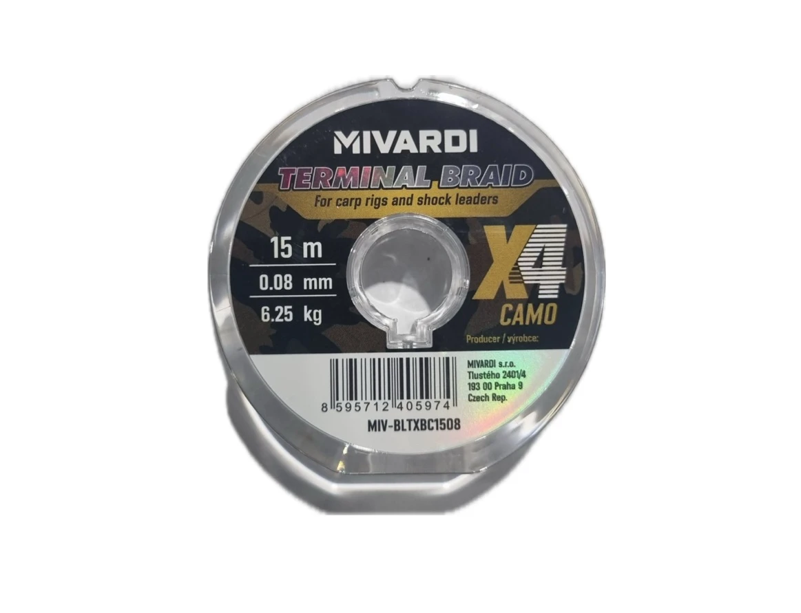 Klasická nadväzcová šnúrka určená pre naväzovanie háčikov pre lov kapra prípadne zubúča či iných druhov rýb. Šnúrka Terminal X4 Braid Camo je vyrobený hustým pletením zo štyroch vlákien a preto výborne drží aj pri odere. Je vhodná pre naväzovanie všetkých druhov rybárskych háčikov. Balenie 15m.