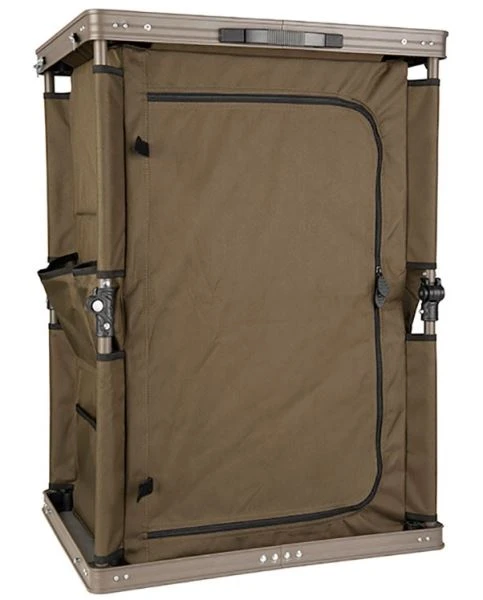 Tak tento doplnok nesmie chýbať žiadnemu kaprárovi pri dlhších výpravách. Špajza alebo tiež skriňka Session Storage od značky Fox predstave praktický doplnok do každého bivaku či prístrešku. Vďaka premyslenej konštrukcii je skriňka behom chvíle postavená a do vstavaných poschodí môžete uložiť buď svoje kuchyňské pomôcky alebo oblečenie či iné doplnky nevyhnutné na rybách. Vďaka tvrdým stenám môžete vrch využiť ako stolík na odkladanie vecí a spodná časť chráni pred preniknutím vlhkosti. Predná stena je otváracia na zips. Súčasťou balenia je aj praktický prepravný obal. Rozmery v postavenom stave sú 60x48x80cm.