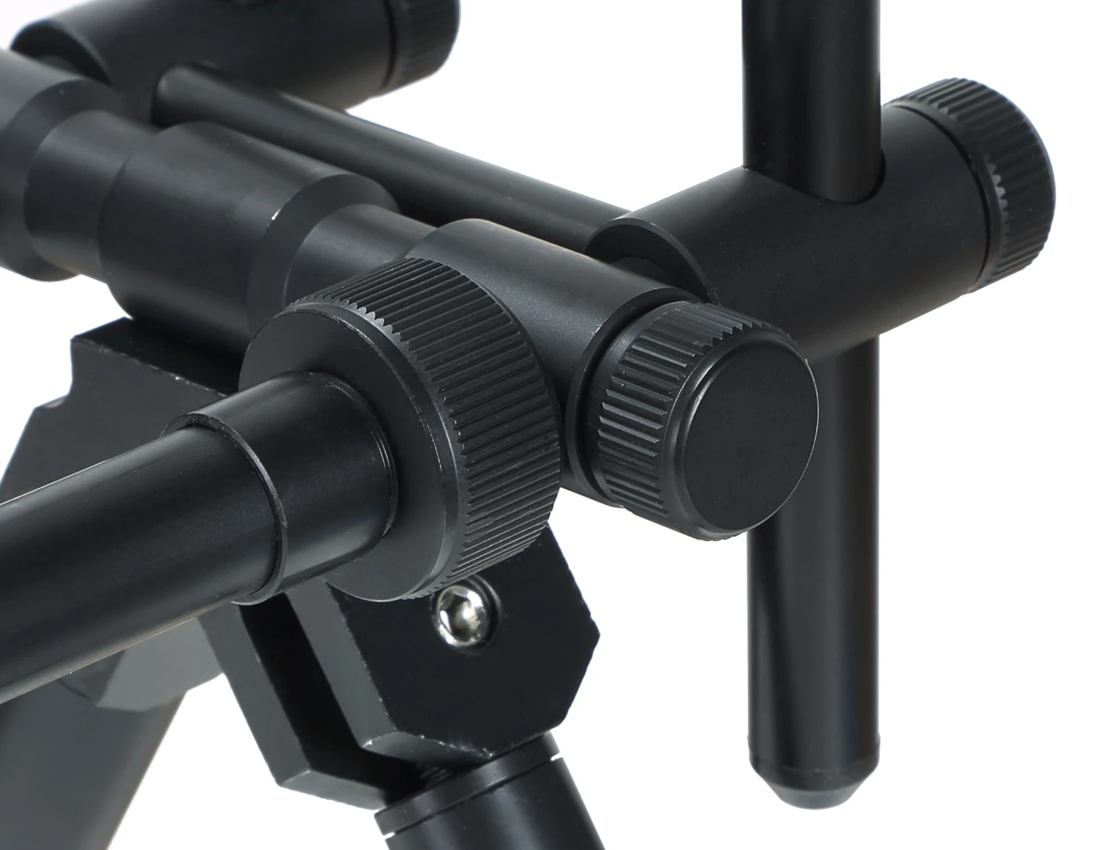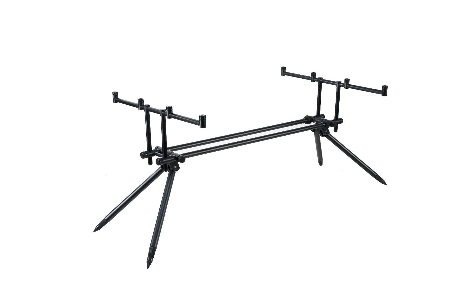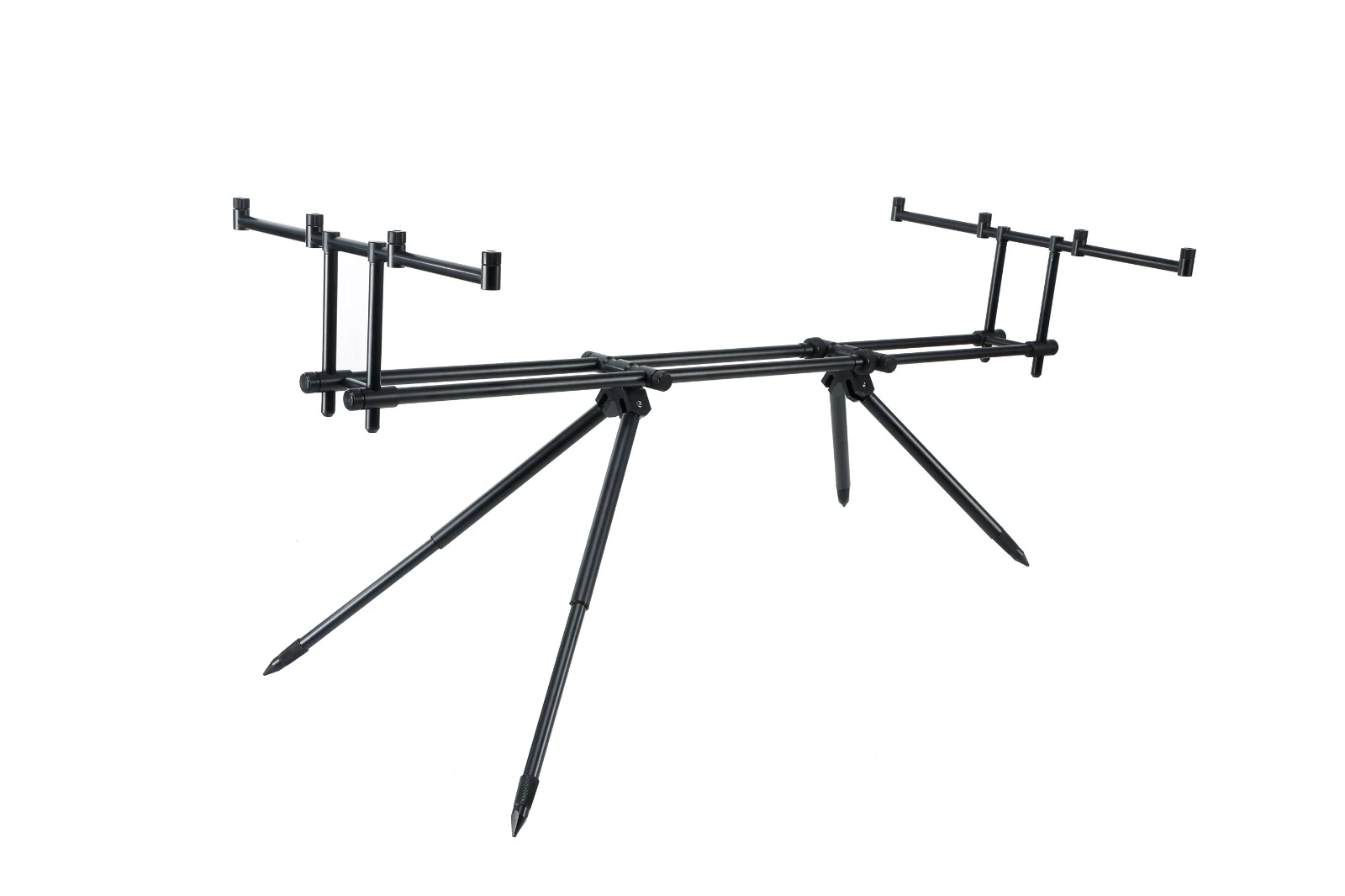 Štýlový a veľmi kvalitný stojan na kaprárske prúty, ktorý má viaceré vychytávky a preto ho môžeme vrelo odporúčiť. Stojan Carpon HighPod Proffi je celokovový kaprársky stojan s modernou matne čiernou povrchovou úpravou. V balení sa nachádzajú štyri krátke nohy a dve dlhé nohy takže stojan môžete prispôsobiť rôznym podmienkam na brehu revíru, kde sa chystáte loviť. Okrem toho extra variabilitu poskytuje možnosť posúvania nôh po stredovej osi čím si stojan dokonale prispôsobíte ako potrebujete. Stabilitu zaručujú teleskopické nohy s hrotmi na konci. Zaujímavou je aj ochrana proti vypadnutiu skrutiek či možnosť uloženia až 3 prútov.
