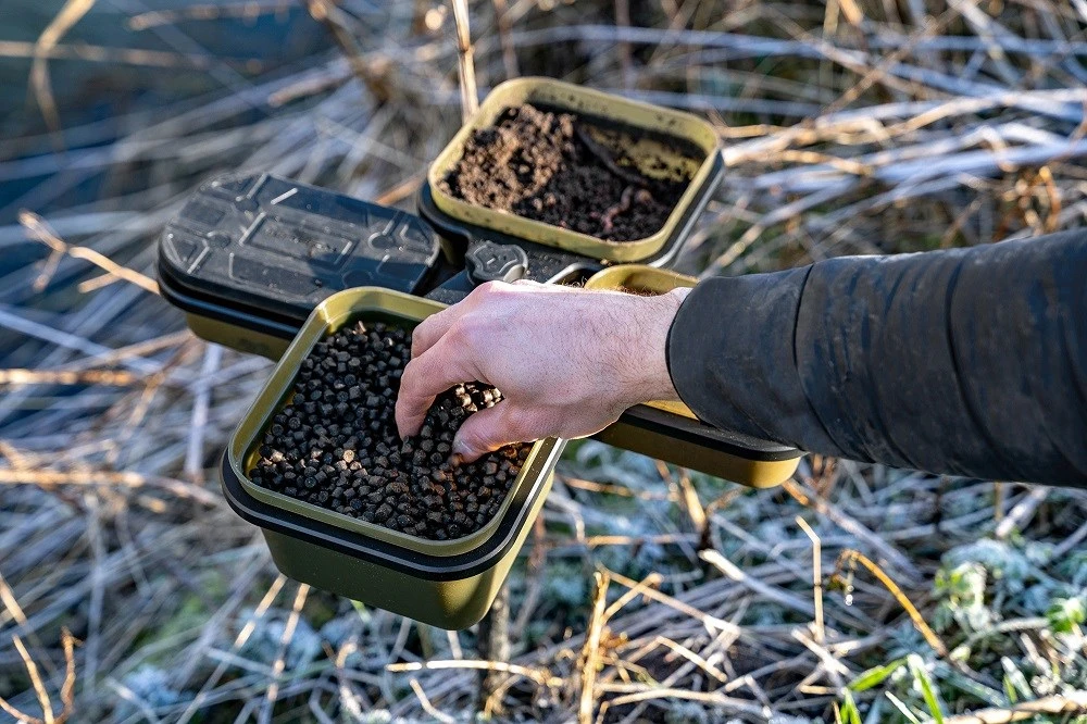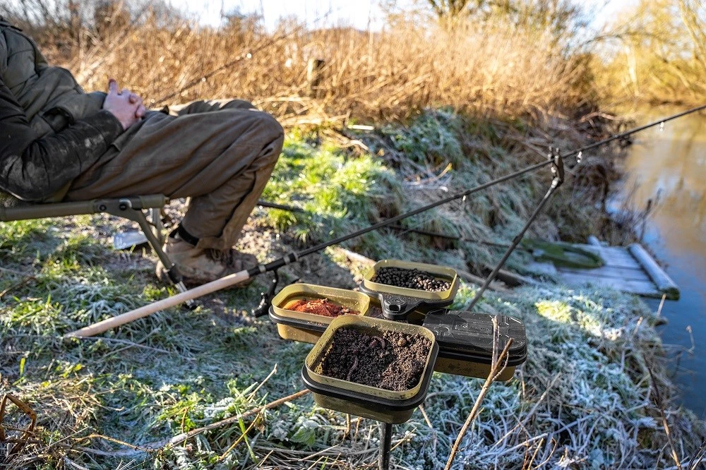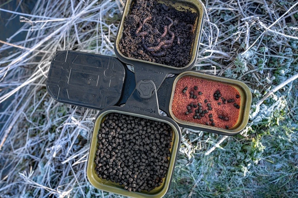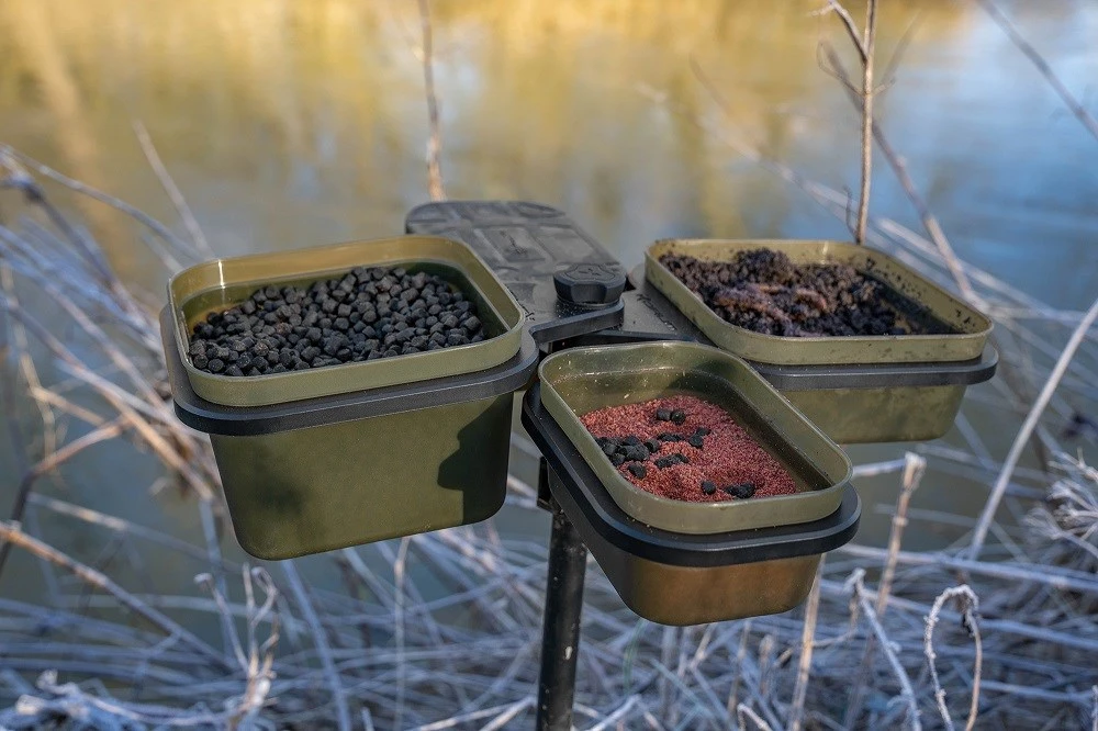 Tento stojan je skladací aby sa zmestil do vrecka vašej rybárskej tašky. Na rozdiel od iných podobných produktov, ktoré sú veľké a neskladné, sme navrhli zbaliteľnú verziu, do ktorej sa bez problémov zmestia dve 1pt krabičky na nástrahy a dve 2pt krabičky na nástrahy. Sada je dodávaná vrátane 4 x krabičiek Korum Bait Tubs.