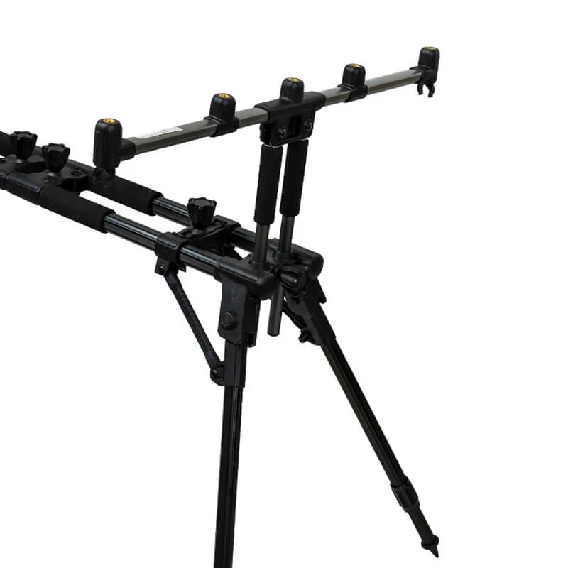 Robustný a spoľahlivý stojan, na ktorý je možné uložiť celkovo až 4 prúty. Stojan Neo Mega Rod Pod je mimoriadne variabilný a dokážete ho prispôsobiť do každej situácie. Vďaka jedinečnému systému upevňovania nôh pomocou silnej matice na hlavnej osi stojana, dokážete nastaviť nohy do každej polohy a pevne ich upevniť. Takto si môžete nastaviť stojan buď do vodorovnej polohy alebo aj do vyššej pozície. Stredová časť sa dá taktiež nastaviť podľa potreby jednoduchým povolením silných matíc. Hrazdy je možné nastaviť aj výškovo čím opäť stojan získava výhodu pred ostatnými modelmi. Výškovo nastaviteľné sú tiež všetky štyri nohy. Na konštrukcii stojana sa nachádzajú klipy kde sa prichytia všetky časti stojana po rozložení čím vzniknú veľmi kompaktné transportné rozmery. Samozrejmosťou je prepravný obal v cene.