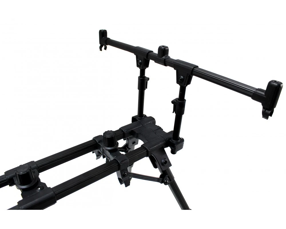 Široká hrazda umožňuje pohodlné umiestnenie 3 veľkých kaprových navijakov. Samozrejmosťou je výškové nastavenie hrázd a teleskopických nôh.
