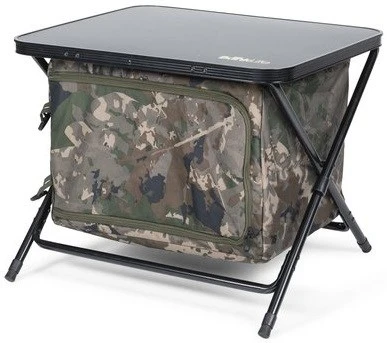 Kompaktný skladací nočný stolík s dvomi oddelenými policami a pracovnou doskou pre stravovanie, viazanie montáží alebo príposluchu, nabíjacích zdrojov alebo mobilných telefónov. Nastavitelné otočné nohy