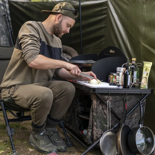 Stolík alebo tiež aj "špajza" Nash Bank Life Cook Station CamoStorage je perfektnou voľbou pre všetkých kaprárov chytajúcich na viacdňových rybačkách. Bol vytvorený pre uloženie a odkladanie čo najväčšieho objemu vecí a okrem úložnej plochy v hornej časti obsahuje aj odkladací priestor pod ňou. Do tohto priestoru si môžete uložiť pomôcky na varenie, ale aj rybársku výbavu či dôležité príslušenstvo.