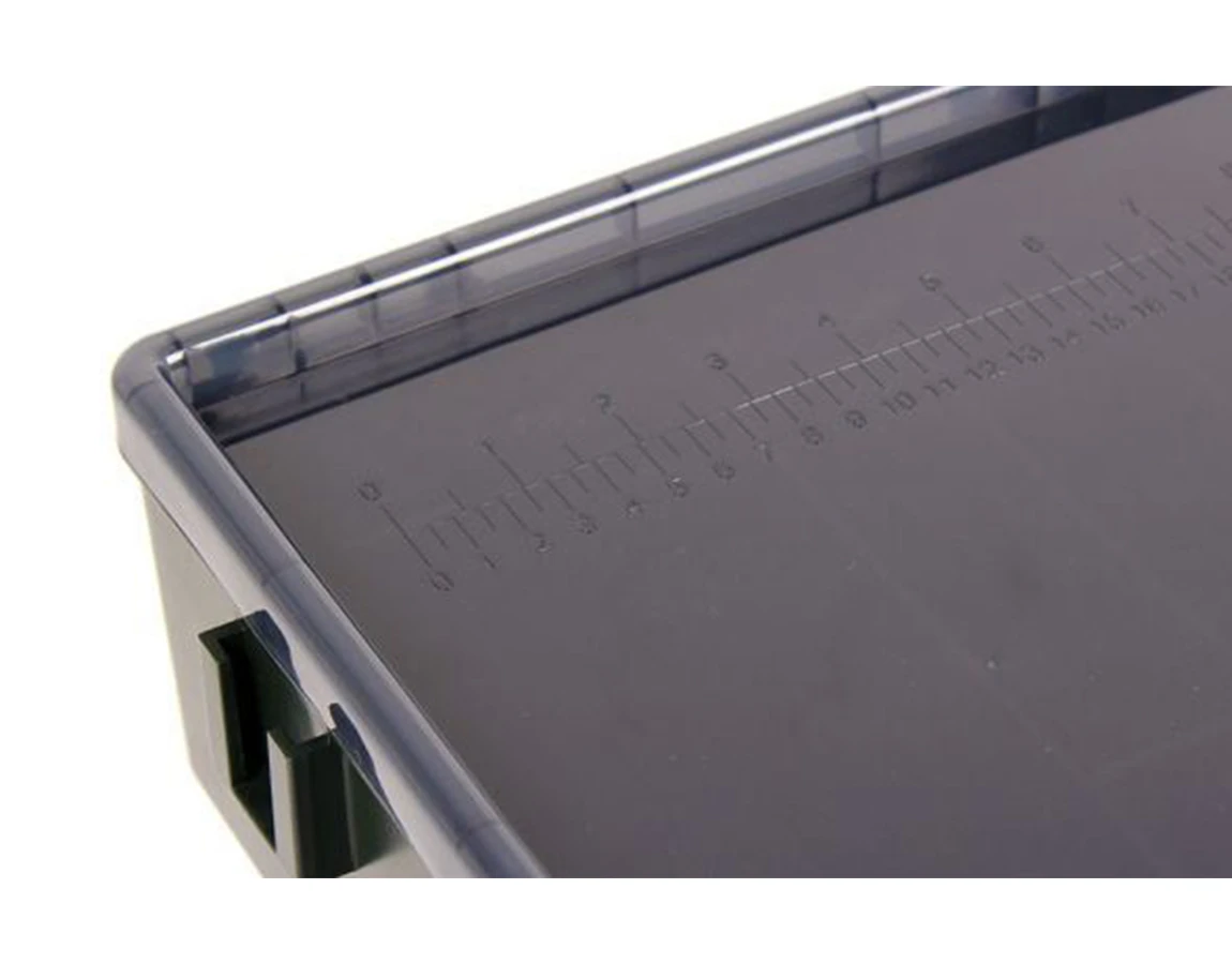 Samotný úložný priestor má výšku 10 cm a ponúka celkovo 4 veľké a 8 malých modulárnych priečok priestoru pre maximálnu univerzálnosť. Je len na vás, akú veľkosť priečinkov v tomto stolíku si zvolíte, no sme si istí, že každá vaša bižutéria si nájde svoje miesto. Veľmi praktickým je integrovaný meter pre jednoduchšie viazanie montáží, integrovaný šuflík pre uloženie hotových náväzcov (vrátane 20 napínacích špendlíkov), či 10 vonkajších očiek pre odloženie montáží, ktoré chcete ihneď použiť.