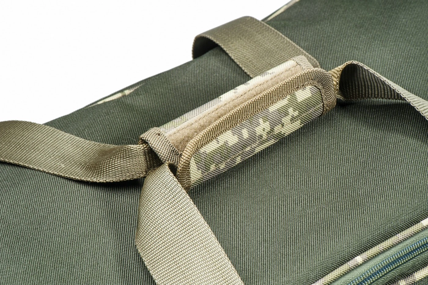 Prepravná taška strednej veľkosti s atraktívnym dizajnom série CamoCODE. Je vybavená zosilneným dnom, priestrannými vonkajšími vreckami, pevnými transportnými ušami a čalúneným popruhom cez rameno pre pohodlné nosenie. Na taške sú použité pevnostné zipsy s dlhou životnosťou s pogumovanými tiahlami MIVARDI a veľmi kvalitné pracky.