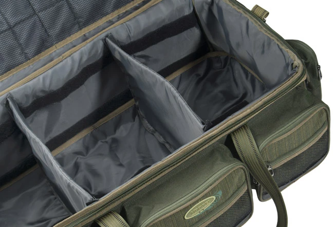 Najväčšia kaprárska taška Mivardi! Obrovská prepravná taška New Dynasty s vystuženým dnom a vrchom pre dokonalú ochranu vašej výstroje, doplnená množstvom užitočných priestorných vreciek po celom obvode. Vnútorný priestor je možné ľubovolne predeliť dvomi odnímateľnými priehradkami. Navyše je taška vystužená špeciálnymi nožičkami v každom rohu, doplnená je kvalitným prepravným popruhom a pevnostnými zipsami s kovovými tiahlami. Ako u prvej tašky na našom trhu je použitý najmodernejší materiál B-POL750D, ktorý umožňuje jednoduchú údržbu pričom je zárukou najvyššej kvality a maximálnej odolnosti.