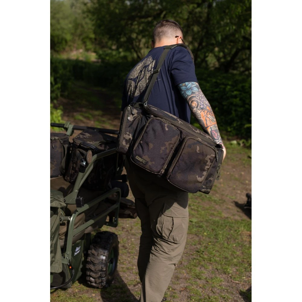 Taška Compac X-Large Carryall Dark Kamo je všestranná kaprárska taška, ktorú môžete využiť na rôzne spôsoby pričom sa jedná o jednu z najväčších tašiek celej série Korda Dark Kamo. Celkové rozmery 62cm x 47cm x 33cm sú ideálne na uloženie nevyhnutných kaprárskych doplnkov. Fakt, že do tašky uložíte naozaj množstvo vecí potvrdzuje až 50 litorvý objem hlavnej časti a až 5 vonkajších vreciek. Praktické je tvrdé vrchné veko, ktoré zároveň môže slúžiť aj ako bivakový stolík či vnútorné vrecko na zips kam uschováte drobnosti, ktoré tak budú stále po ruke. Veľmi chválime taktiež extra polstrovaný popruh cez rameno či pevné dvojcestné zipsy. Výborná je aj spodná časť tašky z vodeodolného materiálu, čo umožńuje jej položenie aj na vlhký podklad.