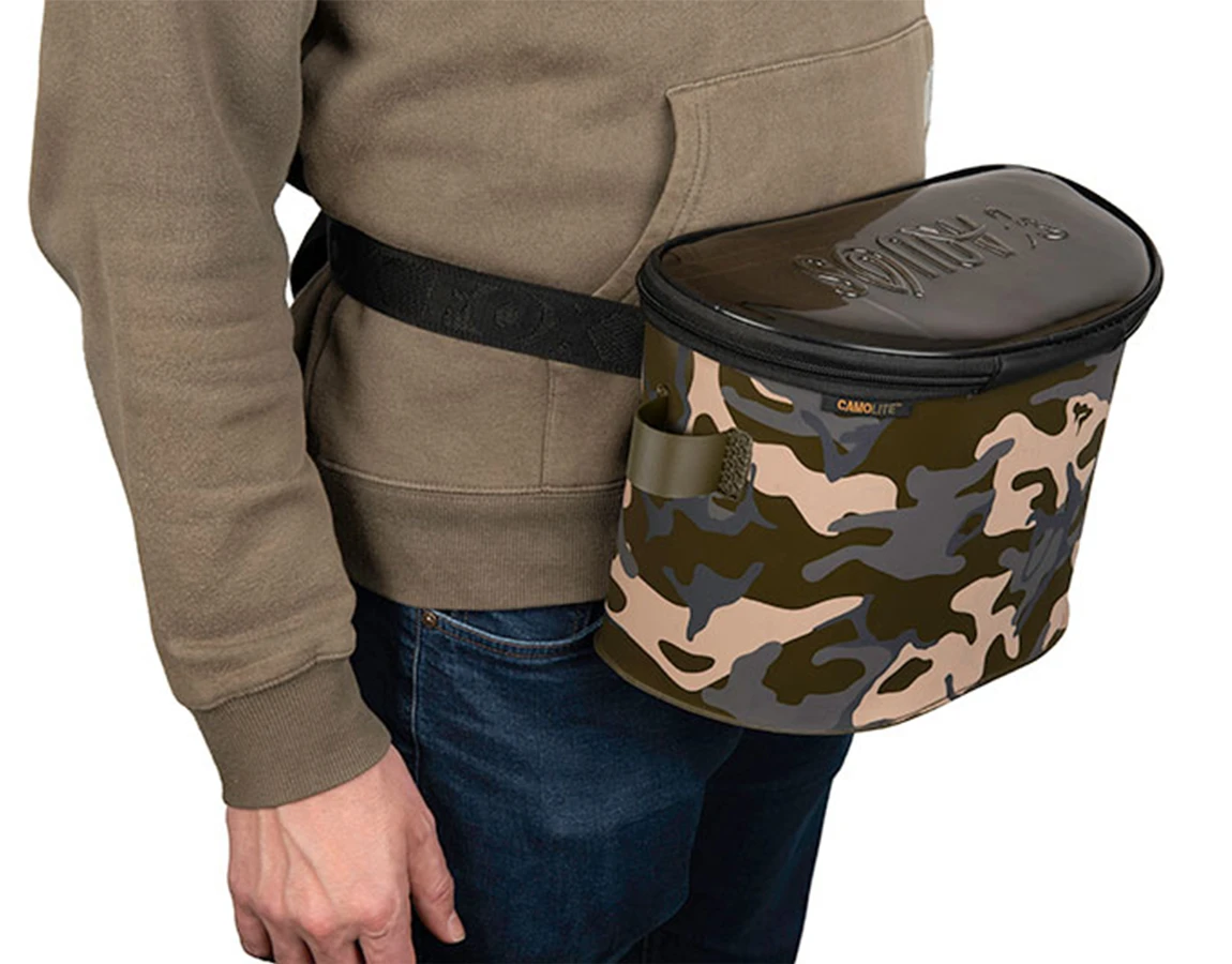 Plná vodeodolnosť zaručuje nielen ochranu obsahu tašky, ale aj to, že sa obsah po uzavretí tašky nikde nedostane. Výhodou je aj vonkajšie bočné pútka pre odloženie praku či kobry, ktoré ešte viac uľahčuje zakrmovanie vášho lovného miesta. Už samozrejmosťou je Fox Camo dizajn a veľmi kvalitné materiály. Dlhú životnosť ponúka 10 mm odolný zips, ktorý zabezpečuje priehľadné Gunsmoke veko. Popruh na pás je nastaviteľný podľa pásu rybára. Ideálne pomôcka najmä na kaprárske preteky.