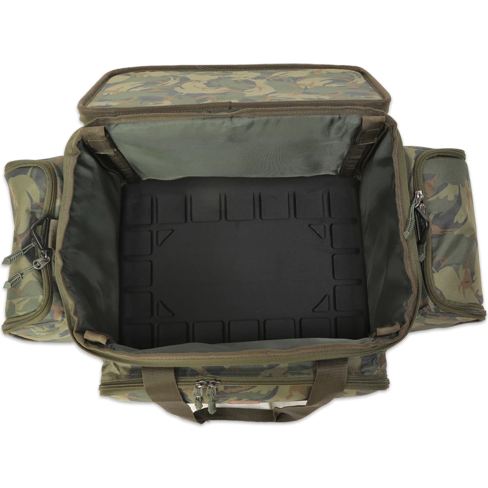 Velká priestranná taška s pevným dnom. Predná kapsa obsahuje krabičky a boxy na návazce. Bočná kapsa obsahuje 3 nádoby na boilies a penové zásobníky na návazce. Požadovaný tvar zabezpečujú vnútorné hliníkové výstuhy. Vodeodolný materiál 210D.