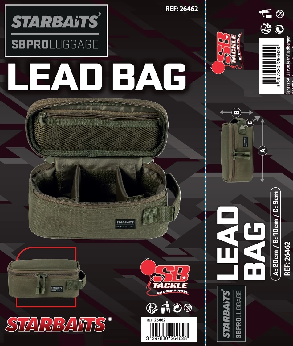 Univerzální taška speciálně určená na kaprařské olová a příslušenství, které u vody potřebuje každý kaprař. Brašna ve výbavě obsahuje dvě vnitřní přihrádky, které celkově vytvářejí tři sekce. Taška disponuje kvalitním a pohodlným madlem neboli i při těžším nákladu se stále příjemně drží v rukou. Kvalitní je i vnější použitý zip či vnitřní, který vytváří síťovinovou kapsu. Rozměry tašky jsou: 20x10x9cm