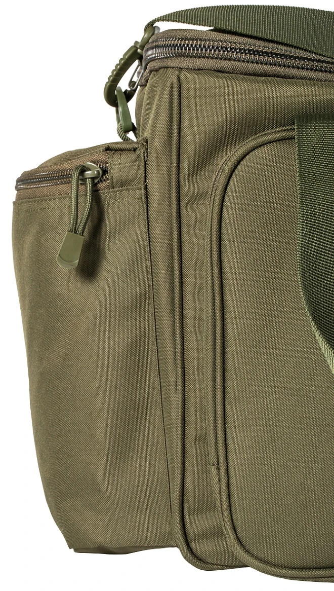 Univerzálna robustná taška, ktorá vám ukryje a prepraví všetko potrebné na vašu rybačku. Veľký vnútorný priesto, jedno veľké predné vrecko a dve bočné vrecká dávajú predpoklady naozaj na dostatný priestor pre vaše doplnky. Taška je doplnená pohodlnými madlami a polstrovaným popruhom cez rameno, ktorý je možné odopnúť pomocou klipov. Kvalitu tašky dokazujú a použité zipsy či samotný hrubý a odolný materiál.