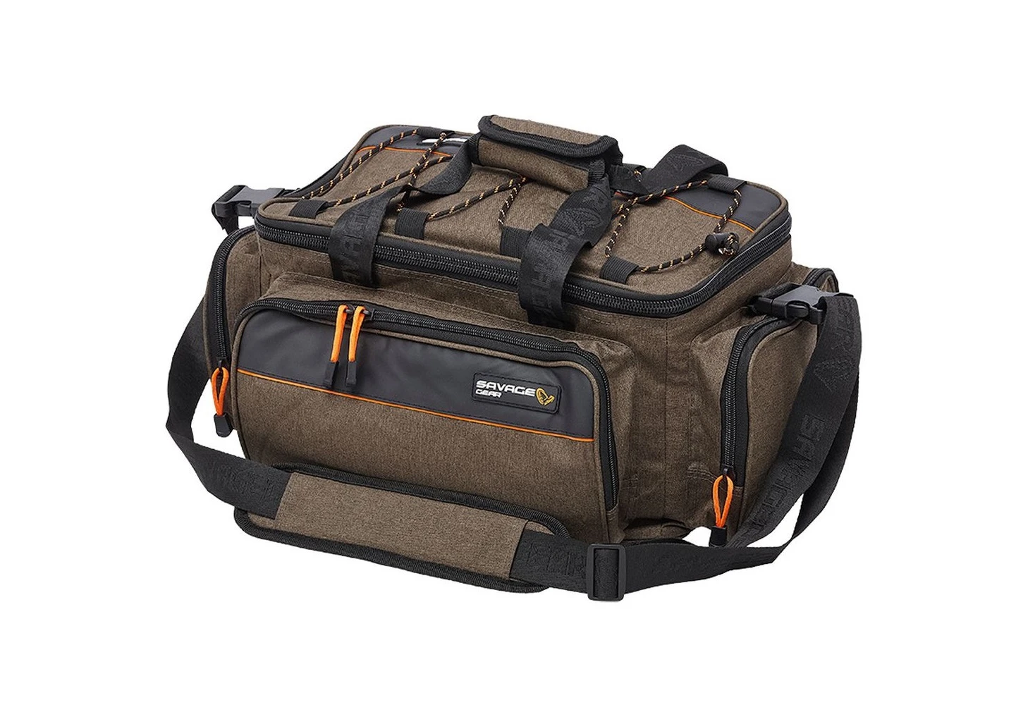 Prívlačové tašky značky Savage Gear sú známe svojou maximálnou prepracovanosťou a vychytávkami, ktoré rybárovi spríjemnia lov. Inak tomu nie je ani pri taške System Carryall Medium v celkovom objeme 18l. Tašku si jednoducho prehodíte cez plece alebo uchopíte vďaka polstrovanému úchopu a vyrazíte k vode. Vysokú kvalitu a spracovanie dotvárajú mnohé vychytávky ako napríklad praktické predné a bočné vrecká, vrchná elastická guma na pripevnenie ďalšieho amteriálu, pogumovaná spodná časť pre možnosť položenia na vlhké podložie či spoľahlivé zipsy. Celkové rozmery tak sú 48x30x22 cm.