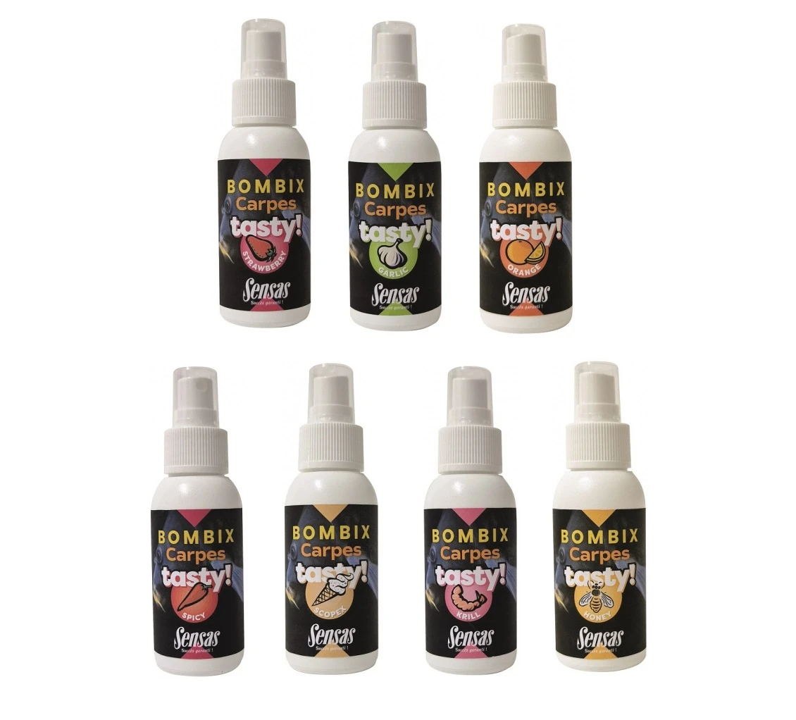 Bombix Carpes Tasty je tekutý posilňovač zanechávajúci výraznú aromatickú stopu dodáva nástrahe alebo kŕmeniu okamžitú zvýšenú atraktivitu a vôňu. Má aj vizuálny farebný efekt. Okolo nástrahy sa vo vode tvorí lákavý farebný obláčik. Na nástrahe dlho vydrží a postupne uvoľňuje vo vode vôňu do okolia. Možno ho aplikovať na celý rad nástrah, ako je boilies, pelety, partikel, červy, pečivo atď. Je možné s ním priamo nastriekať aj kŕmnu zmes v kŕmidle klasickom, feederovom aj method feederovom. Je možné ho používať celoročne na všetkých typoch vôd.