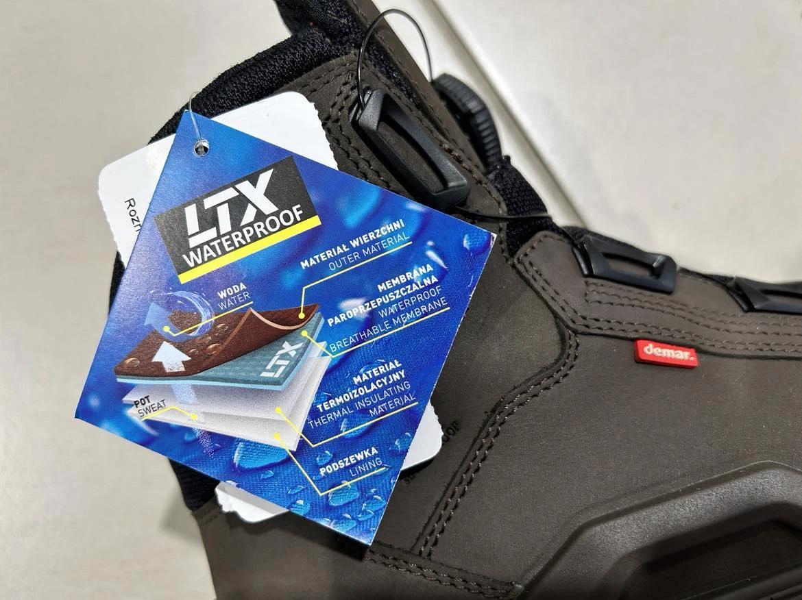 Paropriepustná membrána Waterproof System Demar LTX je tepelne nalisovaná na nubukovú kožu zo spodnej strany čím sa dosiahla maximálna vodeodolnosť topánky pričom topánka stále odvádza pot a prehrievanie nohy preč.