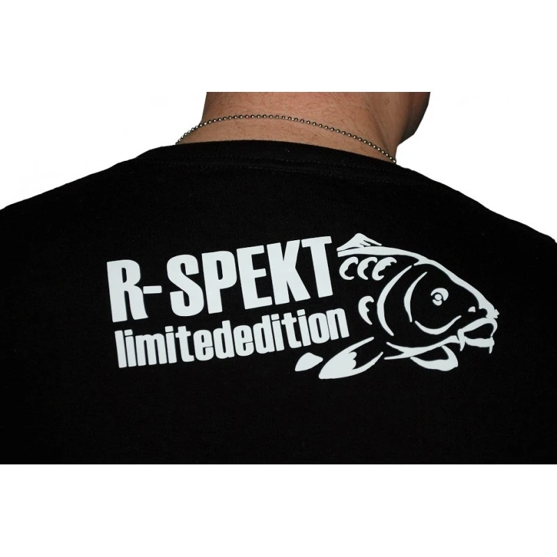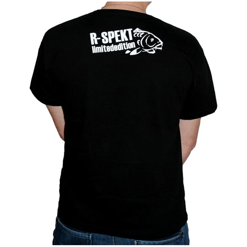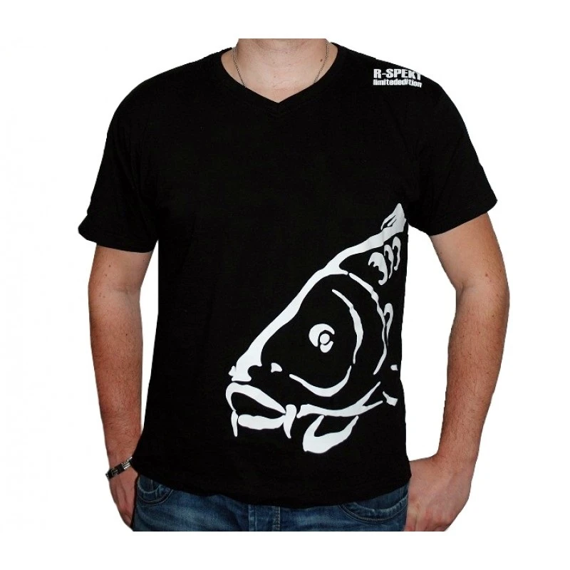 Značkové bavlnené čierne tričko s V-éčkovým výstrihom pre ešte uvolnenejší R-SPEKT štýl. Na tričku je použitá vysoko kvalitná biela transferová tlač v podobe motívu obrieho kapra cez ľavú stranu, ďalej so znakom "R-SPEKT limited edition" na ľavom ramene. Vzadu za krkom sa nachádza kombinácia nápisu "R-SPEKT limited edition" spolu s ďalším motívom kapra.