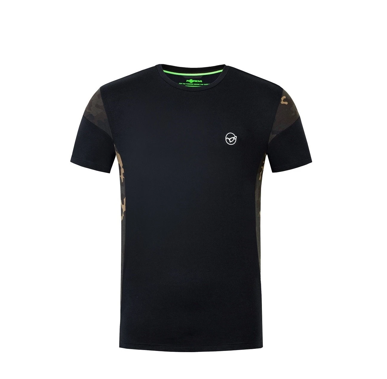 Toto tričko má tmavé kamuflážne segmenty v hornej časti každého rukáva a po stranách trička. Výrazný tmavý kamuflážny vzor nájdete na niekoľkých odevoch z našej ponuky vrátane mikín, tričiek a teplákov. Biele logo Korda na hrudi dobre kontrastuje s čiernou farbou trička.