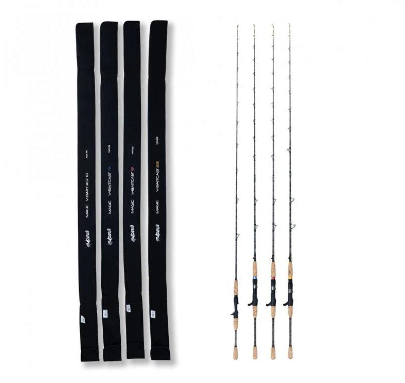 Najkvalitnejšie jednodielne sumcové BAITCAST prúty určené pre chytanie z brehu, z člna, z bellyboatu alebo kajaku. Séria udíc Magic V-Baitcast obsahuje štyri modely prútov s rôznou záťažou čím si presne vyberiete model, ktorý vám bude vyhovovať pre váš štýl rybačky. Označenie prútov 10, 15, 18 a 23 označuje silovú záťaž blanku v kilogramoch. Dokážete si tak presne vybrať prút pre lov s vábničkou, prút na ťažkú prívlač alebo vertikálnu prívlač, lov s plavákom alebo iný spôsob lovu sumcov. Všetky modely sú špeciálne vyvinuté pre použitie multiplikátora.