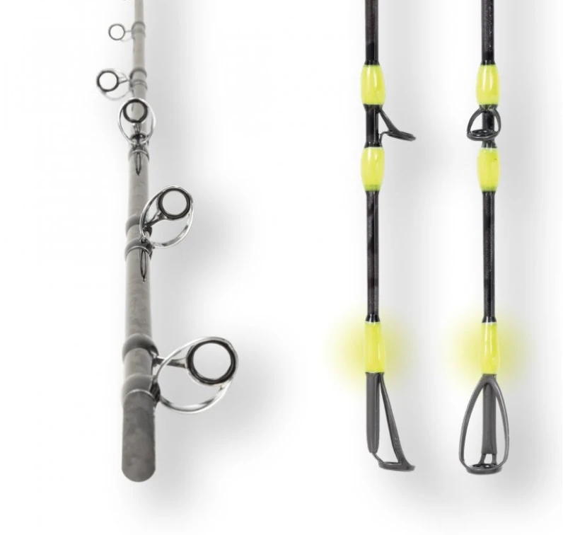 Už na prvé uchopenie vás prút prekvapí veľmi tenkým japonským blankom. Práve Toray blank s povrchovou úpravou v dizajne sumčej kože zaručuje neskutočnú pevnosť a odolnosť. Budete sami v šoku koľko toho tento blank zvládne a aké veľké ryby sa vám vďaka nemu podarí zdolať. Exkluzivitu prútu dotvárajú Fuji Alconite očká a Fuji úchyt navijaka, ktoré sú dokonale vyladené. Zaujímavosťou je špeciálne osadenie očiek do špirály, ktorý je prispôsobené silovému ohybu blanku. Veľkým plusom je osadené aj veľké kovové oko nad sedlom navijaka, kde si môžete zafixovať háčik či nástrahu (okrem modelu 10). Exkluzívna je aj špica s tromi žltými svietiacimi prúžkami, ktoré sa rozosvietia pri zasvietení UV čelovky.