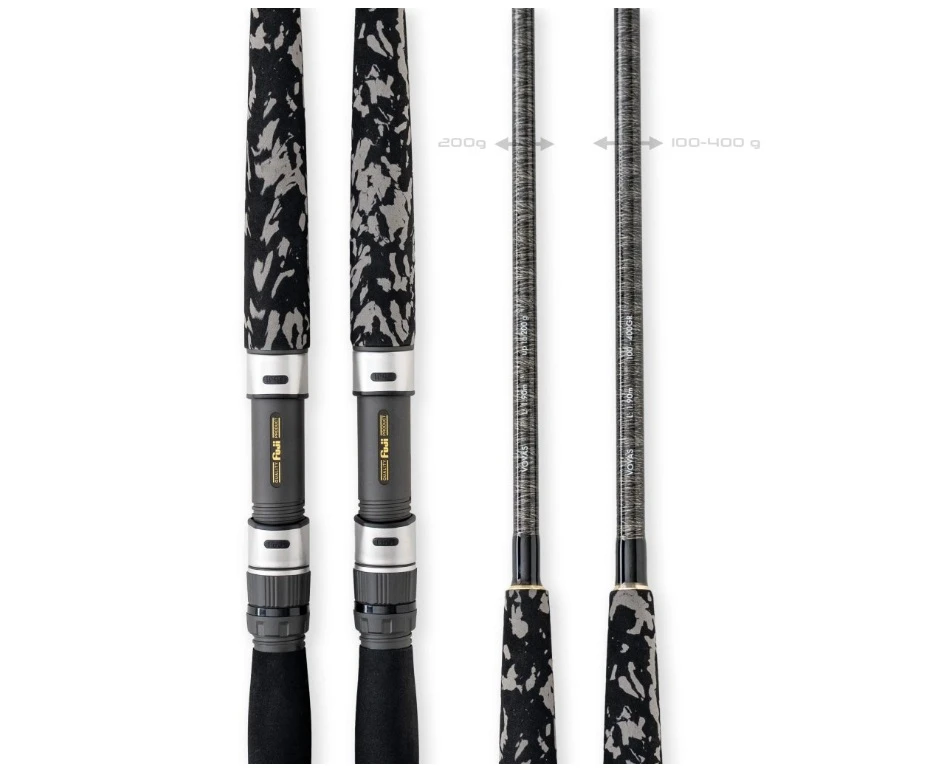 Exkluzivitu tejto série dokazuje 100% kórejský blank so špeciálnou povrchovou úpravou a luxusným nástrekom v dizajne sumčej kože. Nakoľko sa jedná o jednodielne prúty, tak poskytujú obrovskú silu, ktorá vám výrazne zvyšuje šance na úspešné zdolanie trofejných rýb. K blanku boli prispôsobené aj silové očká či FUJI PSS20 sedlo navijaka. Rukoväť je potiahnutá s hrubšou EVA penou aby dokonale sadla v ruke a aby ste sa dokázali do prútu poriadne oprieť. Chválime flourescenčné pásiky na špici aby ste mali prehľad, ako sa prút v noci ohýba pri zdolávaní. Prút je zabalený vo veľmi kvalitnom neoprénovom obale.