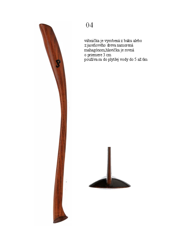 Vábnička je vyrobená z buku alebo jaseňového dreva namoreného mahagónom, hlavička je rovné s priemerom 3cm. Používa sa do plytšej hĺbky maximálne do 5-6m.
