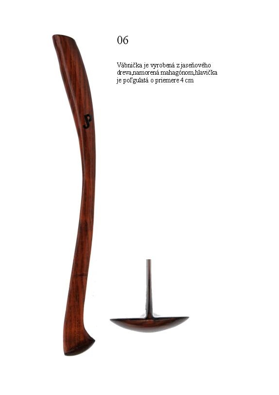 Vábnička je vyrobená z jaseňového dreva namoreného mahagónom, hlavička je poľgulatá s priemerom 4cm.