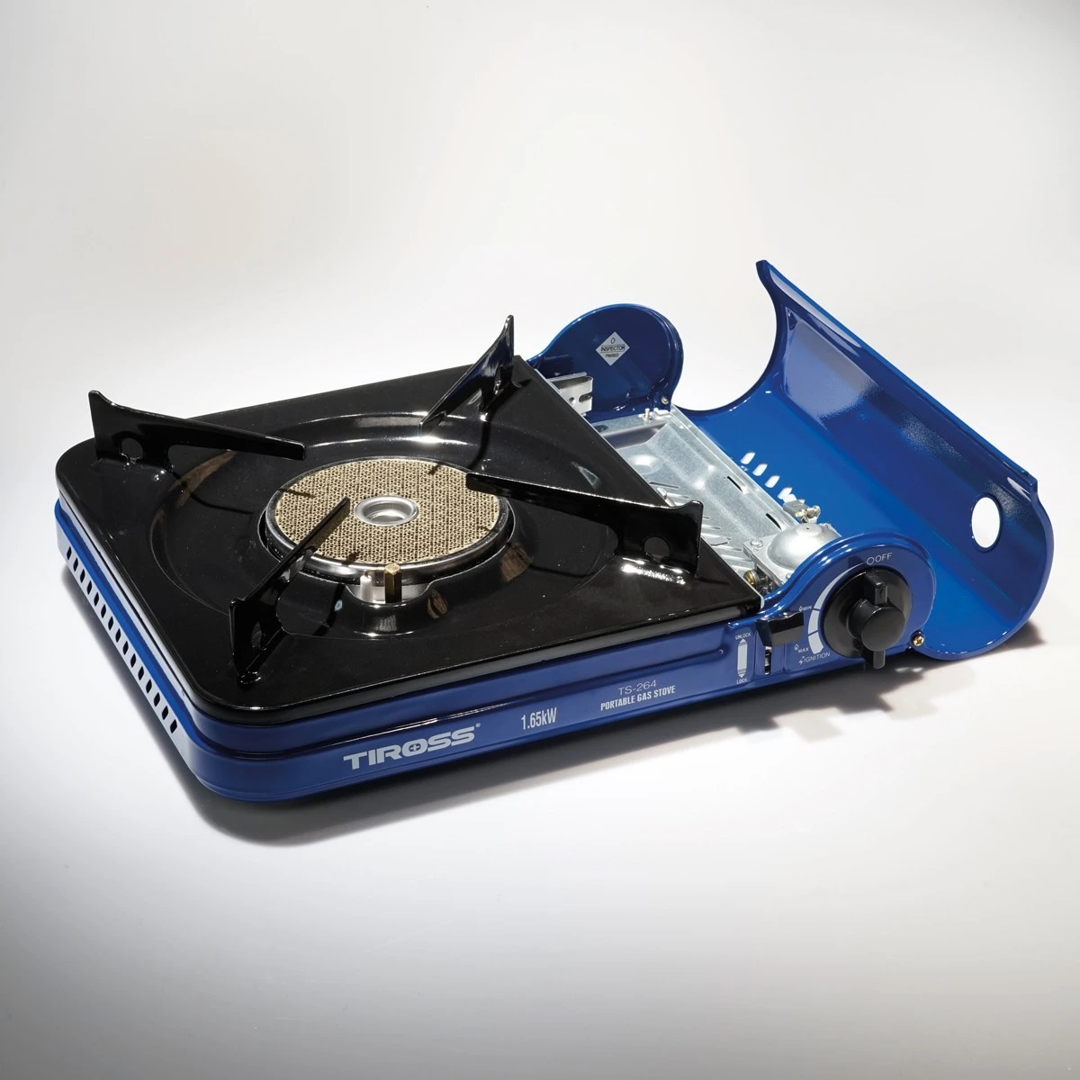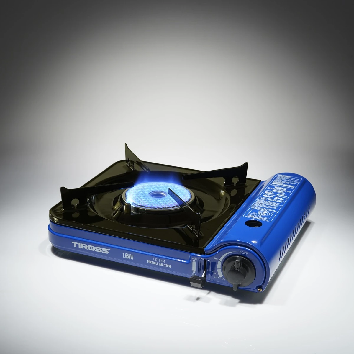 Praktický a veľmi dobre prenosný turistický a rybársky varič, ktorý poskytuje dostatok tepla ako na ohrievanie jedál tak aj na samotnú prípravu plnohodnotných jedál v prírode, pri vode či kdekoľvek mimo domova. Varič keramický Tiross poskytuje maximálnu efektivitu v pomere spotreby plynu a tepla. Práve keramická platňa po rozpálení šetrí spotrebu plynu a tak dokážete ušetriť spotrebovaný plyn a variť dlhšie. Samozrejmosťou je piezoelektrické zapaľovania a plynulá regulácia plynu. Varič je napájaná klasickými plynovými kartušami 220g, ktoré sa jednoducho vložia do bočného priestoru a poistia proti vypadnutiu.