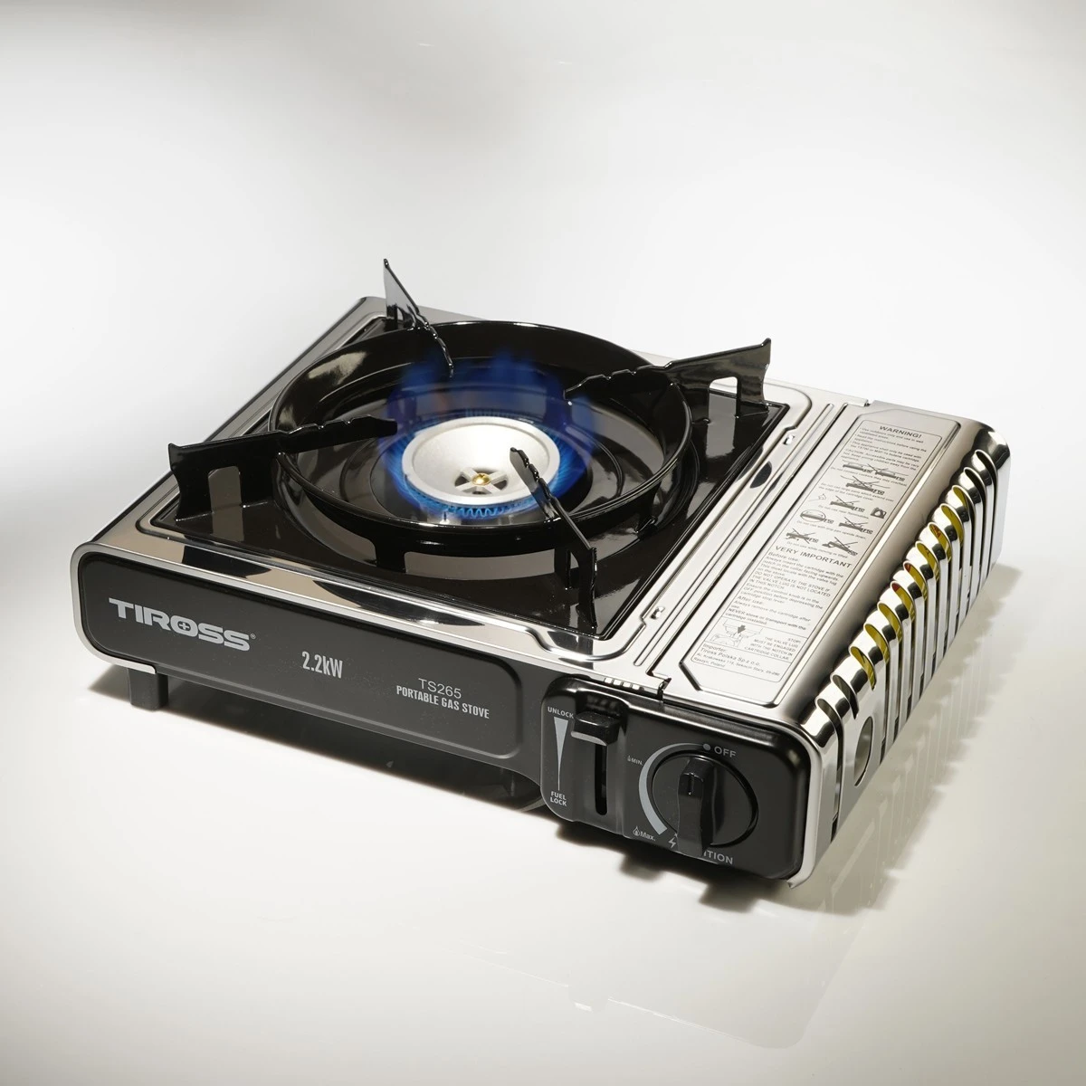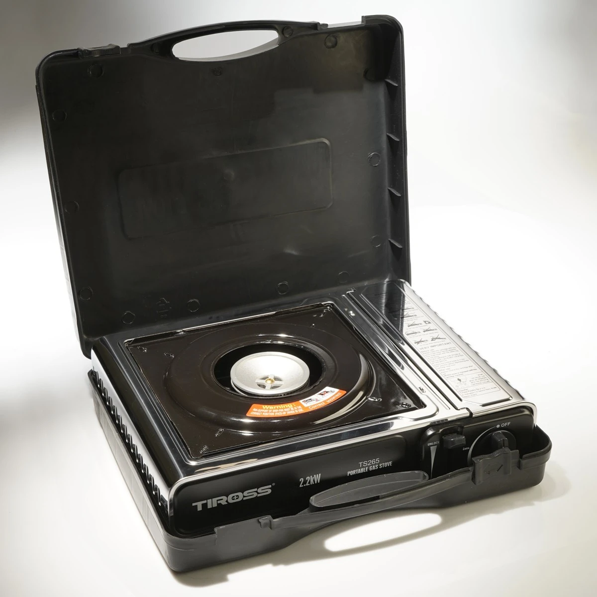 Praktický a veľmi dobre prenosný turistický a rybársky varič, ktorý poskytuje dostatok tepla ako na ohrievanie jedál tak aj na samotnú prípravu plnohodnotných jedál v prírode, pri vode či kdekoľvek mimo domova. Varič prenosný Tiross poskytuje vysoký výkon až 2,2kW a tak na ňom pripravíte naozaj každý pokrm. Samozrejmosťou je piezoelektrické zapaľovania a plynulá regulácia plynu. Varič je napájaná klasickými plynovými kartušami 220g, ktoré sa jednoducho vložia do bočného priestoru a poistia proti vypadnutiu.