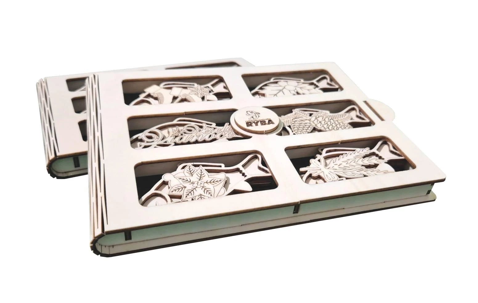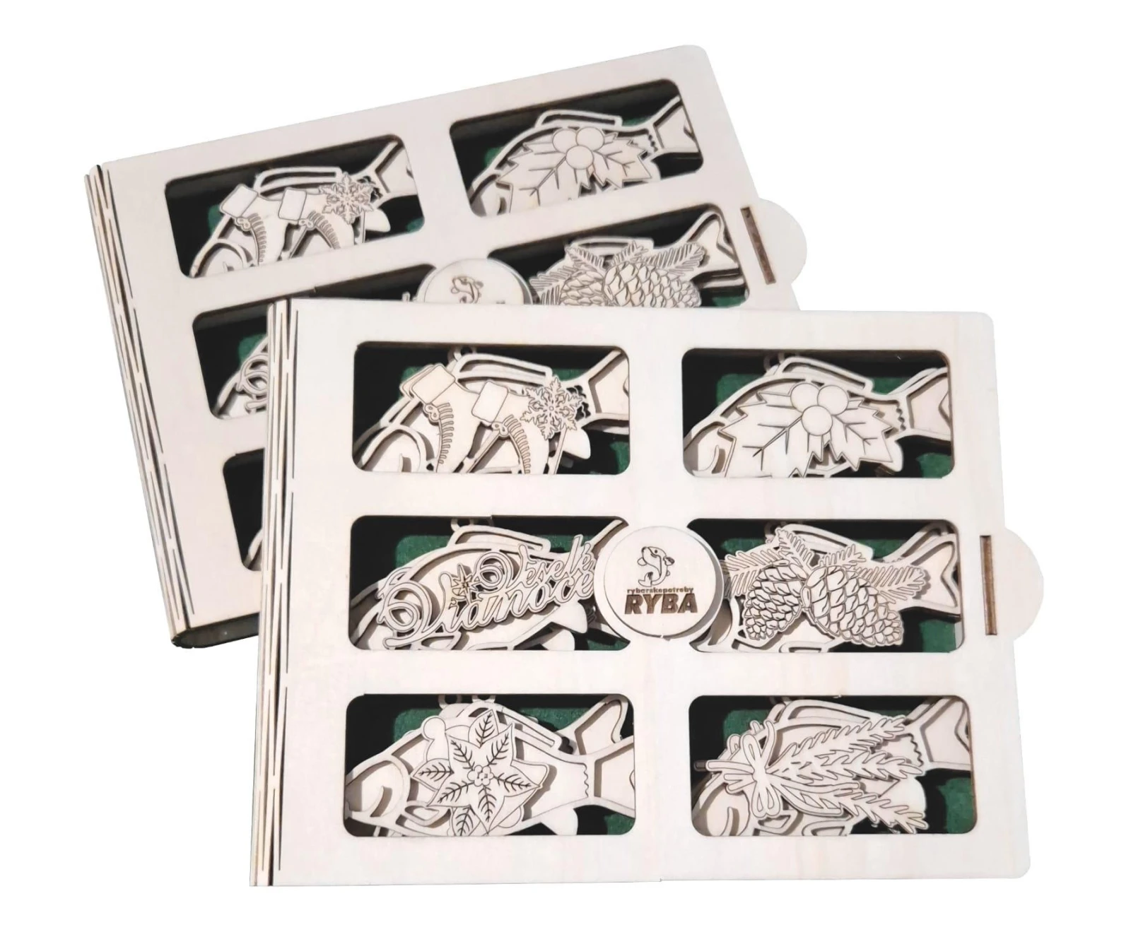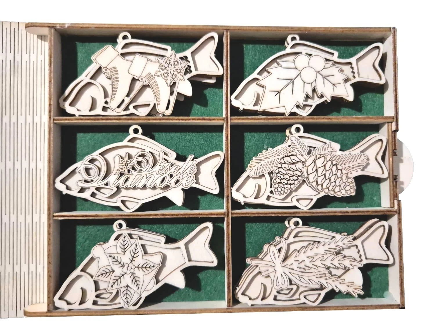 Najkrajší rybársky darček na Vianoce! Máme pre vášho rybára nádherný darček v podobe drevenej kazety s 12 kusmi vianočných ozdôb s rybárskou tematikou. Drevená kazeta má rozmery 22 x 17 cm pričom je otvárateľná a výborne chráni ozdoby pred poškodením. Celkovo v nej nájdete až 12 dekorácií v tvare kapra s rôznymi vianočnými motívmi. Každá ozdoba má očko pre zavesenie či už na vianočný stromček alebo vo vašej obývačke. Ideálny darček pre rybára.