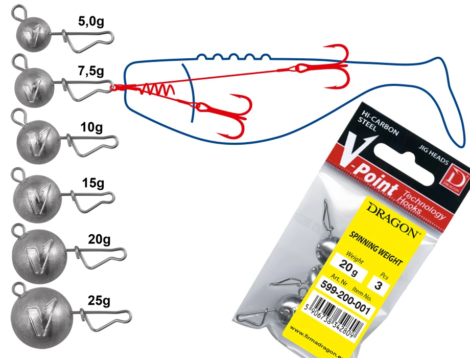 nástraha je umiestnená na strímrovom či dropshotovom háčiku, ktorý sa do "čeburašky" cez vnútornú karabínku uchytí, avšak háčik je teraz spojený so záťažou kĺbovo a teda sa nástraha pohybuje vláčnejšie a prirodzenejšie, čo je ideálne pri love s gumennými nástrahami. V balení 3ks.