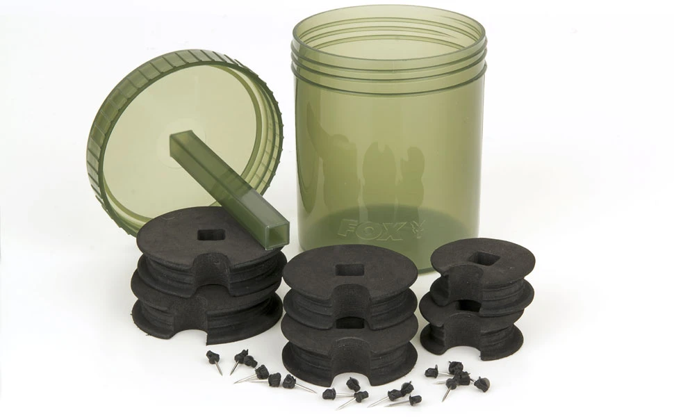 Dodávané so šiestimi EVA cievkami – 2 z každej veľkosti. Najväčšia cievka je ideálna pre ukladanie Zig Rigov, taktiež pomáha pri tvorbe rigov rovnakej dĺžky. Jedno navinutie je 1/2ft (stopy). Tieto cievky môžete ľubovoľne zostaviť, pretože cievky môžete kúpiť aj samostatne. Tak máte možnosť poskladať Multi Chod & Zig Bin podľa svojich vlastných potrieb. Tento systém môžete používať aj pri výrobe montáže, keď potrebujete svoj Chod Rig ohnúť do správneho tvaru za pomoci pary. Dodávané s 18 pinmi (špendlíkmi). K jednotlivým cievkam, ktoré môžete kúpiť samostatne sú dodávané so šiestimi špendlíkmi.
