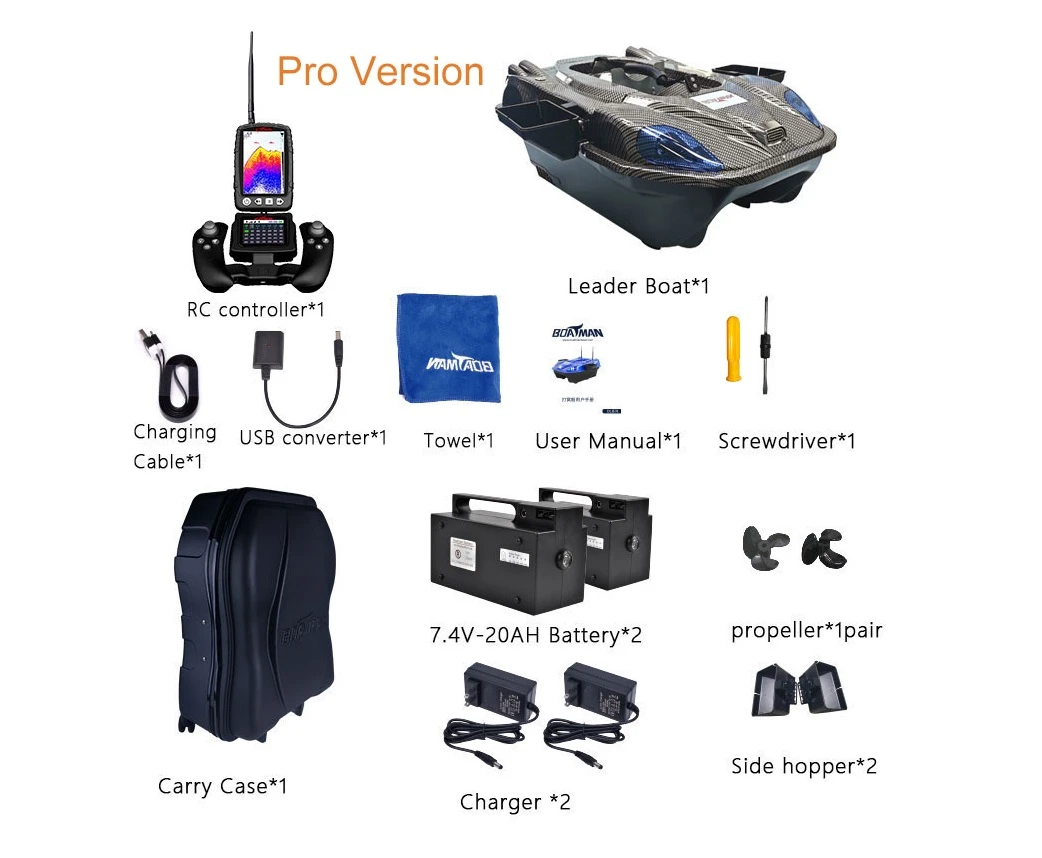 Veľmi populárna zavážacia loďka, ktorá bola navrhnutá anglickými rybármi hlavne na stredné či väčšie jazerá, kde potrebujete nástrahu zaviesť presne, rýchlo a dôkladne. Vďaka svojim rozmerom je veľmi stabilná aj počas silnejších vĺn a vodotesnosť ju ochráni aj pred striekaním vody. Zavážacia loďka Leader Pro je osadená aj výkonným GPS modulom a sonarom s možnosťou uloženia až 56 pozícií a presnosťou 2m. Loďka disponuje komorou, kde sa zmestí až 4kg krmiva a dve bočné komory. Celková nosnosť je tak až 7kg krmiva naraz! Vďaka svojmu tvaru je veľmi rýchla 80m za minútu pričom si udržuje vynikajúcu stabilitu. Vďaka tomu je ideálna na stredné a väčšie revíry, kde ju využijete na 100%.