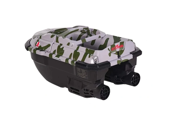 Najnovší model zavážacej loďky, ktorý bol navrhnutý anglickými rybármi hlavne na mešie jazerá, kde potrebujete nástrahu zaviesť presne a hlavne potichu. Zavážacia loďka Vulcan Camo s GPS má výborný kompaktný tvar a výborné jazdné vlastnosti. Disponuje jednou veľkou komorou, kde sa zmestí cca 2-3kg krmiva s celkovou nosnosťou až 3kg. Vďaka svojmu tvaru je veľmi rýchla pričom je možné vybrať až z troch rýchlostí. Pomalá jazda je napríklad vhodná na mapovanie dna napríklad s ťahaním externého sonaru ako je Deeper. Vďaka tomu je ideálna na menšie a stredné revíry, kde ju využijete na 100%. Novinkou pri tejto loďke je vodeodolný ovládač s displejom a GPS pozíciami, ktorý zároveň aj pláva pri spadnutí do vody. Taktiež je ovládač výrazne zmodernizovaný a dostal výrazné veľké tlačidlá čo výrazne uľahčuje celkové ovládanie.