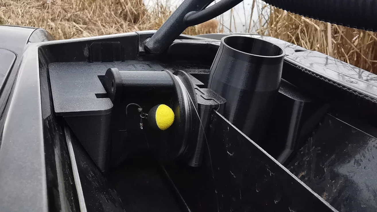 Set vypúšťača zigových náväzcov Zig Releaser a dávkovača tekutých návnad Cloud Maker na zavážaciu loďku Prisma, resp. Carp Scout.